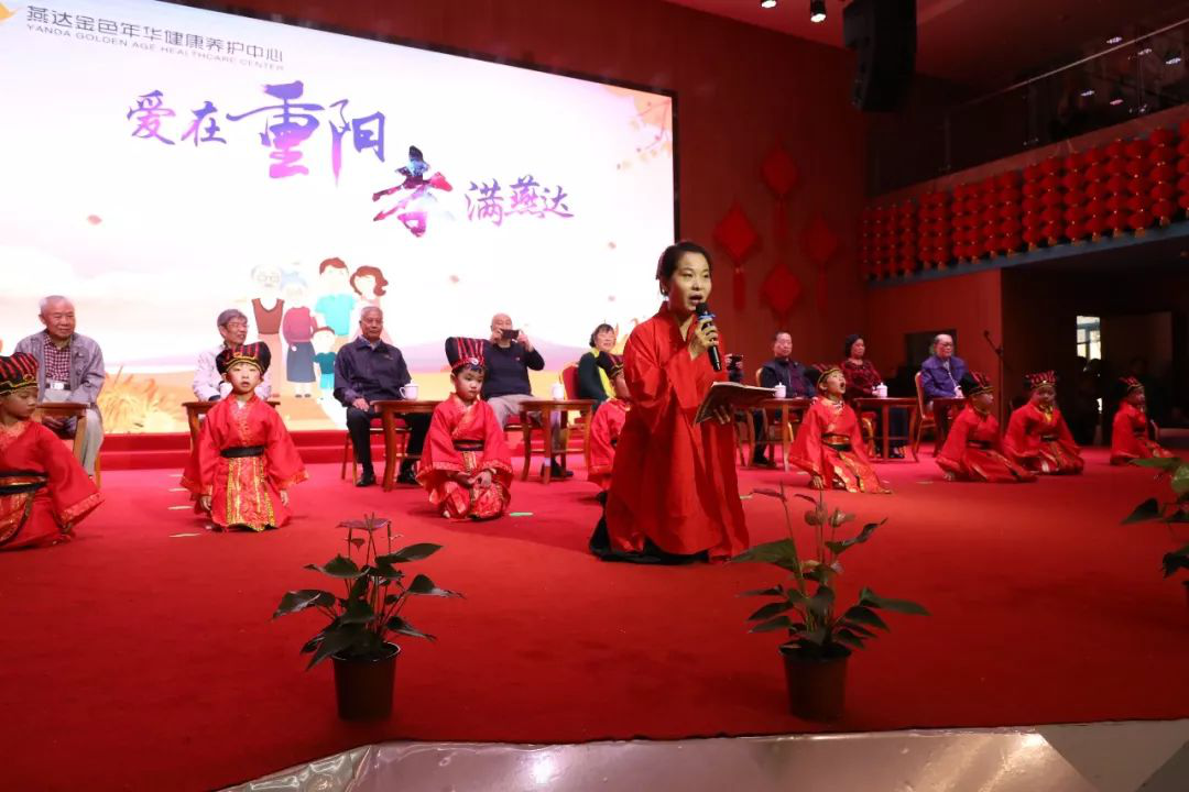 由燕达金色年华健康养护中心老年大学、海军大海舞蹈团和骄点时尚幼儿园的小朋友们共同带来一场以孝文化为主题、精彩纷呈的文艺汇演,歌舞《中华孝道》、朗诵《百孝篇》、情景剧《弟子规》、京剧《智取威虎山》等节目,深受观众们的喜爱与赞叹。