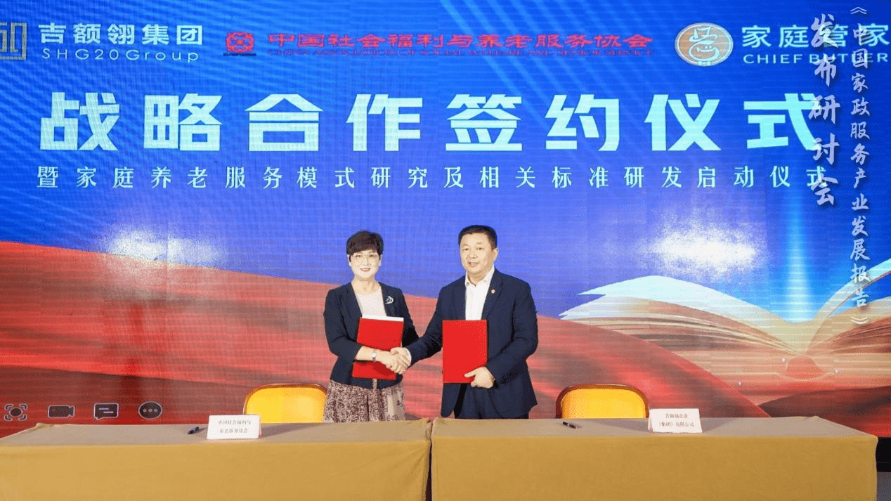 中国社会福利与养老服务协会和上海吉额翎企业(集团)有限公司及家庭管家(上海)科技有限公司,就开展家庭养老模式和服务标准研发的合作进行了签约。
