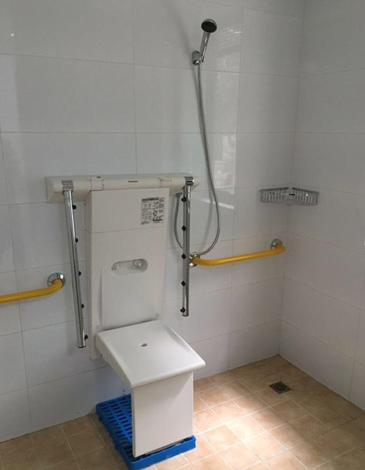 颐养苑还引进了智能马桶以及一台助浴机,老人坐在椅子上,全方位的立体花洒能方便帮助老人沐浴。