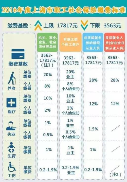 图片说明:2016年度上海市职工社会保险缴费标准
