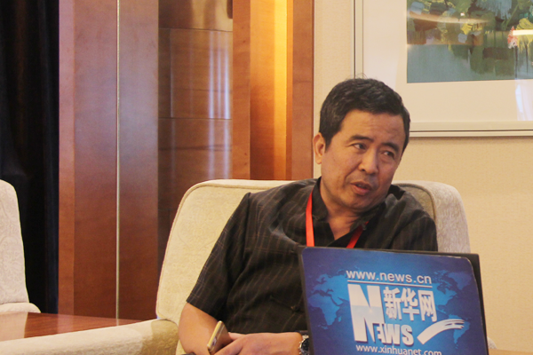 图为张雪亮接受新华养老采访