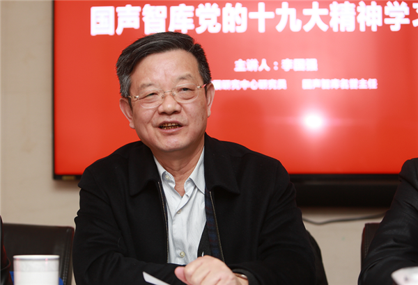 1月31日,国声智库“党的十九大精神学习班”在京举行第五次学习研讨。国务院发展研究中心研究员、国声智库名誉主任李国强担任主讲嘉宾,来自智库、金融、文化、企业、媒体等行业的代表约30人参加了学习。