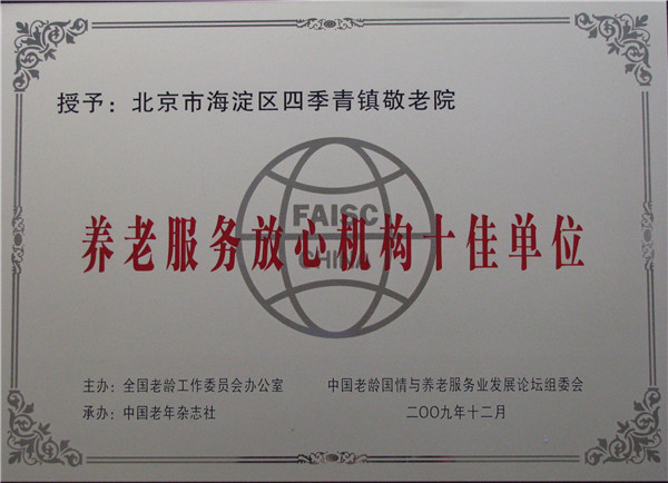 自2009年起,四季青敬老院为了实施服务标准化试点工作,专门成立了标准化领导机构和工作机构,建立详细的分工负责制,责任明确,落实到人,并提出“完善标准体系、强化人员培训、坚持持续改进、提升工作质量”四项目标和“建立标准化工作长效机制、制定标准化工作规划与计划、开展满意度测评、坚持年度审评”四大措施,从制度层面提供了有力的保障。