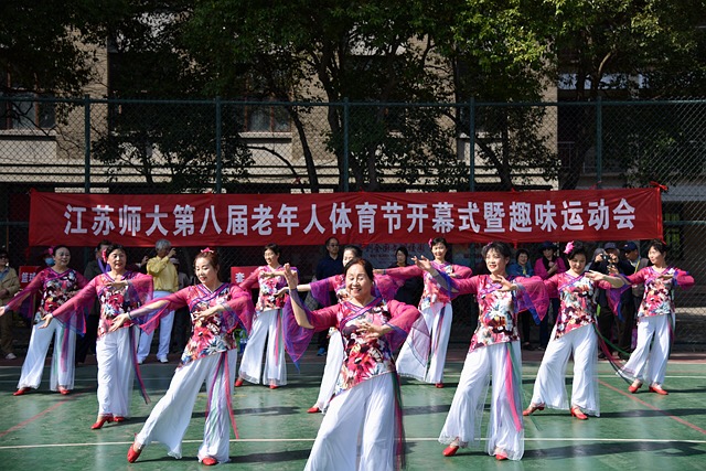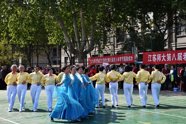 又是人间四月天,江苏师大云龙校区田径场,畔那长寿多姿的紫藤花在春的光艳中如期绽放,溢彩流芳;一年一度的老年人体育节在这醉人的花香里盛大开幕。
