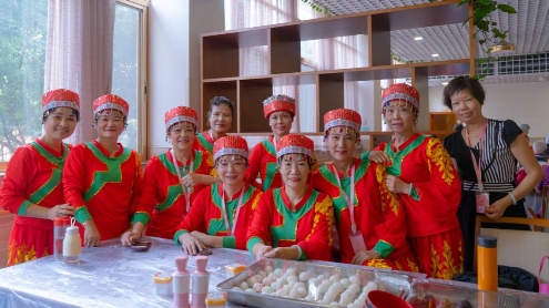 活动在欢乐的聚餐中结束,长者们不仅分享了泰宁养老院可口、健康的美食,还品尝了自己亲手制作的冰皮月饼。