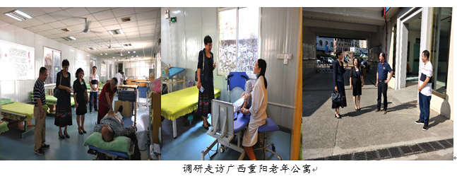 此次调研,王红漫主委(北京大学教授)会同广西壮族自治区关心、关注、关爱健康老龄化的学界、实务界中青年才俊走访了广西养老服务行业协会、广西医大仁爱养老服务中心、广西南宁双创科技有限公司、广西“太和·自在城”、广西重阳老年公寓、合浦县社会福利院、北海市银海区银滩养老院以及桂林夕阳红养老中心等处,就广西壮族自治区医养结合模式及康复护理体系建设情况进行了深入访谈和调查研究,对广西壮族自治区医养结合与老龄事业和产业发展实地调研。本次调研重点考察广西壮族自治区医养结合模式及康复护理体系建设状况。