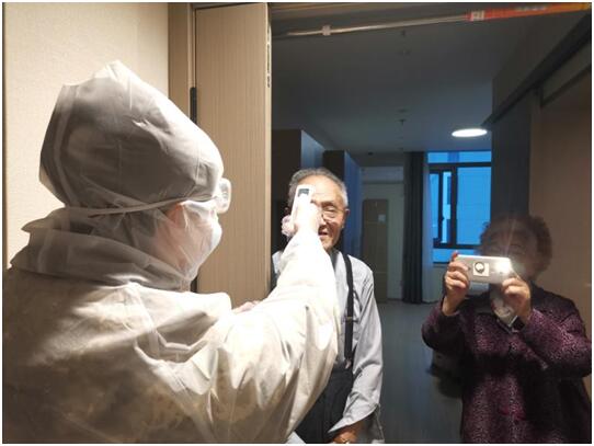 工作人员为老人每天进行三次测温。
