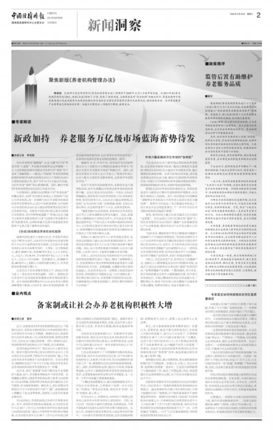 与旧版相比,新版《办法》聚焦于对“养老机构”的概念修正,如将“床位数在10张以上的机构”可定义为养老机构,进一步清晰与社区养老服务机构间的差异化管理导向;以及许可制改备案制、允许政府兴办养老机构交由社会力量运营管理等涉及经营方式改革的内容。在接受中国经济时报记者采访的相关专家看来,其对外鲜明地透露了“形成以社会力量为主体的养老服务格局”以及“全面放开养老服务市场”的政策导向,这将把承载万亿级市场蓝海的养老服务产业真正置于蓄势待发的地位。