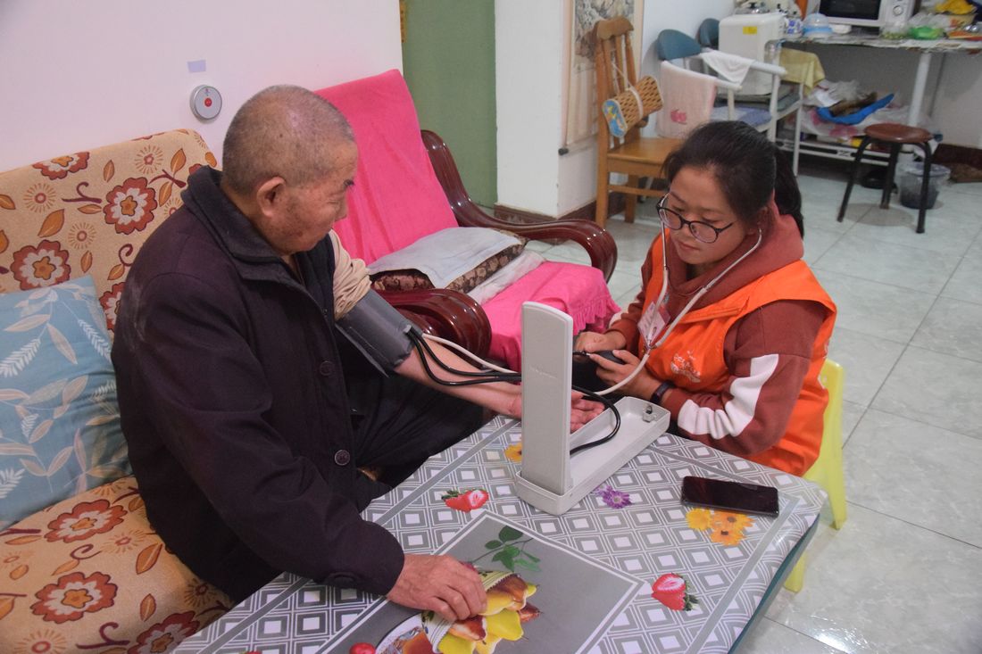 “程大爷,我来看看你,今天身体感觉怎么样?”10月27日,记者来到安公社区新疆石油花园二期小区时,恰遇小区的养老管家汪晓莉前往85岁的程全福老人家给老人量血压。程全福现在一个人住在小区里,他患有气管炎的旧疾,加上年迈行动不便,平时就在家后面的菜园摆弄蔬菜,或者去小区、河边散步,与朋友下棋。汪晓莉每天都会给他打电话,也常过来陪伴老人,关心他的健康与生活,这让老人家心里很踏实。