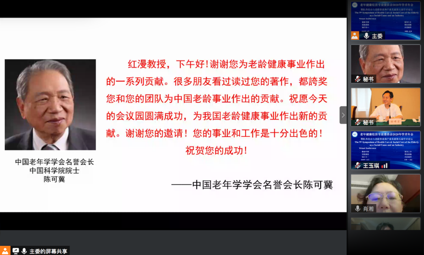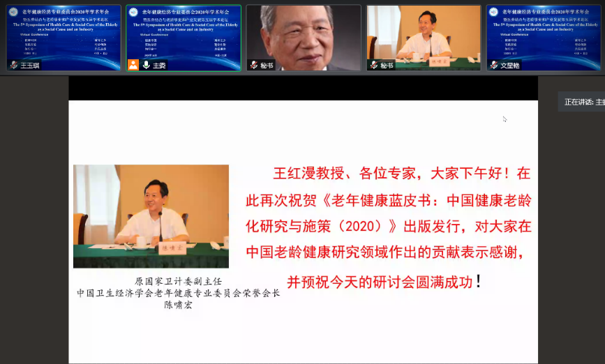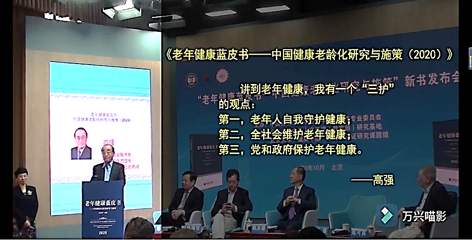 会议还重温了第十二届全国政协副主席、中国科学院院士、中国科协名誉主席韩启德先生和国务院原秘书长、原卫生部部长、中国卫生经济学会总顾问高强先生在《老年健康蓝皮书--中国健康老龄化研究与施策(2020)》新书发布仪式上的讲话;供与会者学习。