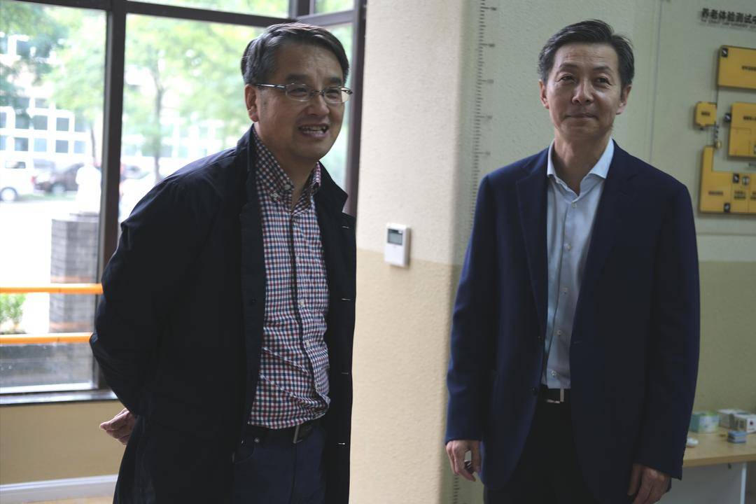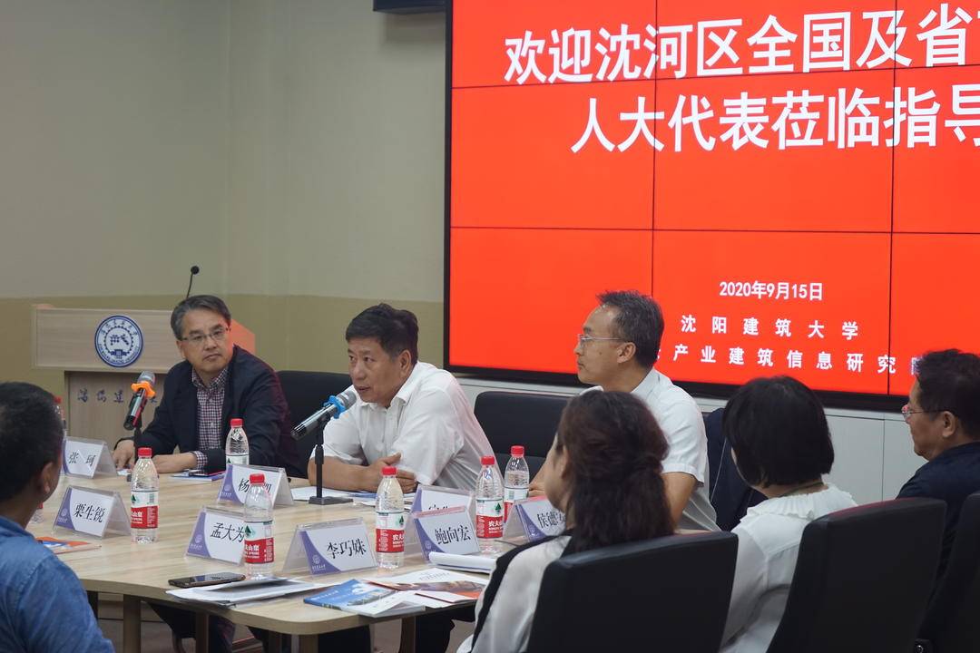 张珂(左一)在沈阳建筑大学养老研究中心与有关人员交流。