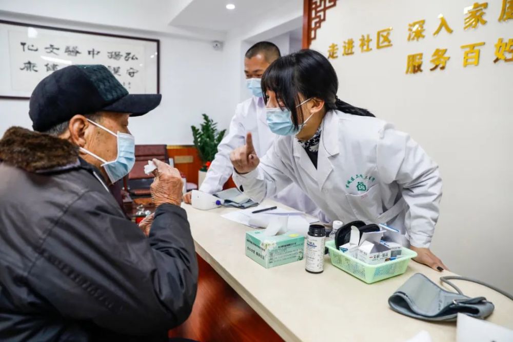 上墩卫生院惠民社区卫生服务站为老人提供服务