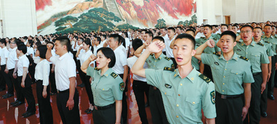 新党员在展览馆宣誓。 |