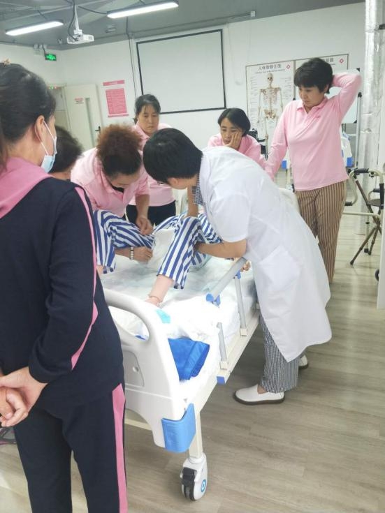 养老照护行业是需要不断熟练技能才能上户服务的职业,为了帮助学员全面快速地掌握专业技能,蜂蓝职聘采用理论与实践互为补充的教学模式,打好培训组合拳。打造了标准化设计建设,教具配备齐全的实操教室,拥有丰富经验的讲师对每一名参加培训的学员手把手操作指导,反复练习。通过实景模拟教学,保障学员的精细化培训,让养老护理师打牢理论知识基础和熟练实践操作技能。