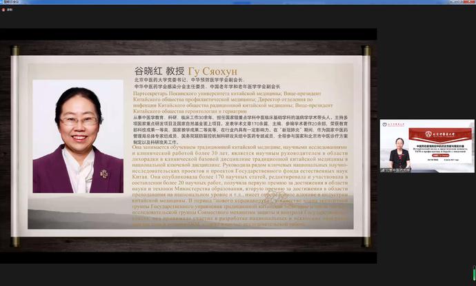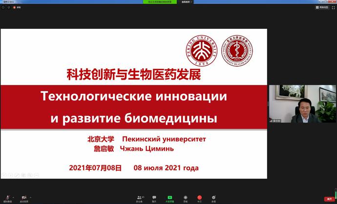 随后,中国工程院院士、北京大学国际癌症研究院院长詹启敏开启了首场专题培训“科技创新与生物医药发展”。他从我国医学发展的时代背景、国际生物医药技术发展趋势和前沿领域、我国生物医药技术发展重点任务等方面进行了阐释,特别是面对新冠疫情给全球健康带来新趋势与新挑战,以及我国抗击新冠肺炎疫情取得的战略性重大胜利,对科技创新与生物医药发展进行了专业解读。之后,北京中医药大学校党委书记、中华预防医学学会副会长谷晓红教授开始了培训第二讲“中医药在疫情防控中的历史贡献与现实价值”。她回顾了中医药抗疫的悠久历史,阐释中医药在近年来疫病防治中的实践与价值,展望未来探寻传承创新的中医药在疫病防治的发展方向,最后介绍了新型冠状病毒疫情下的健康管理中医药方案,并作为中医药抗疫一线的专家向俄方学员分享了我国在疫情防控中的经验。