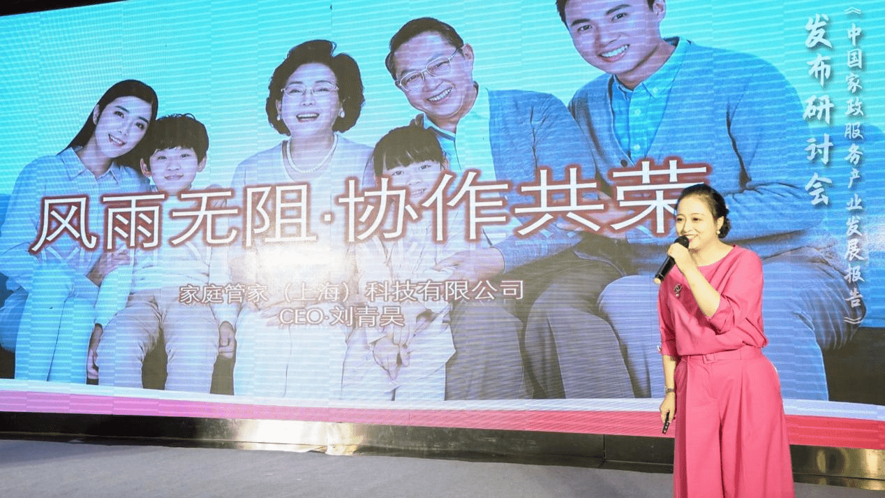 在现场嘉宾的共同见证下,上海吉额翎企业(集团)有限公司董事长于海群宣布《中国家政服务产业发展报告》正式发行。