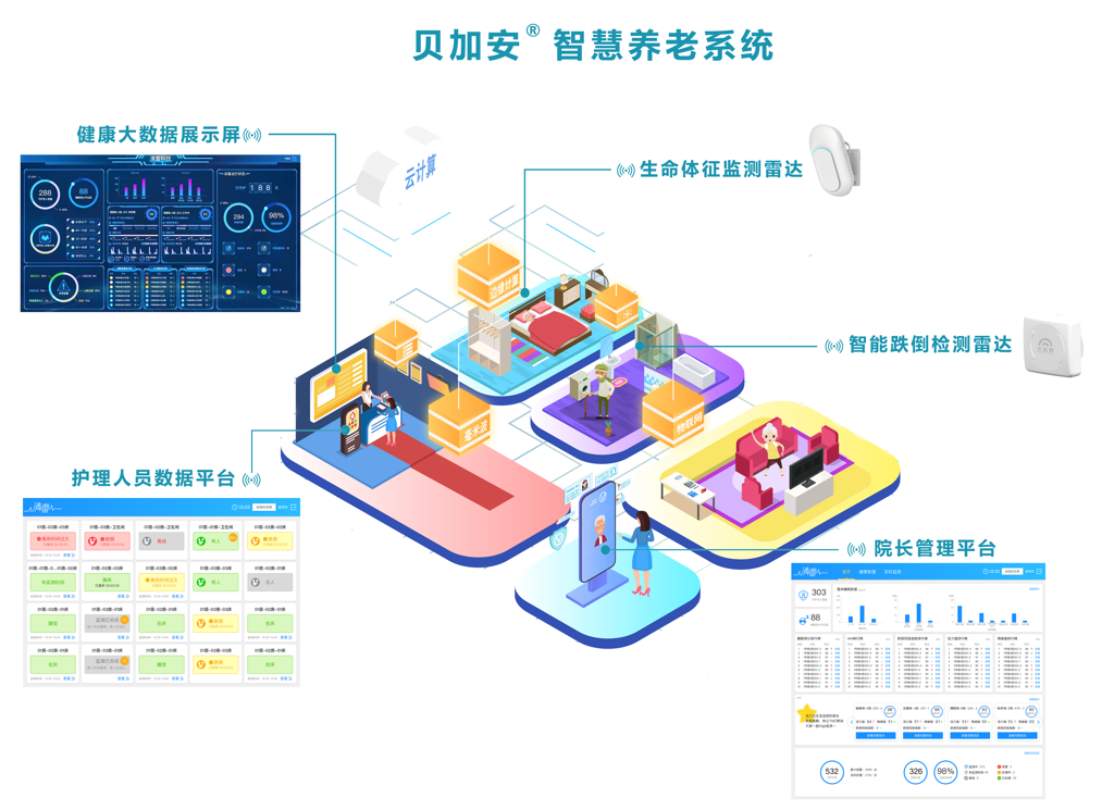 此外,丁玉国还通过实际案例向观众展示了贝加安®智慧养老系统,护工或家属可以在客户端实时观察老人的呼吸、心跳、体动、离床等生命体征数据。设备还可以对老人睡眠情况进行记录分析,为呼吸慢病诊断提供医疗级数据;此外,毫米波智能跌倒检测设备可以在老人跌倒后及时告警,让跌倒老人在第一时间得到救助;最新开发的健康数据智慧大屏则可以真正实现养老业务的数据化、可视化,帮助机构和社区及时且清晰的掌握每一位老人的生命健康数据。