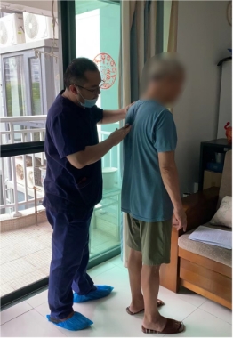 服务过程中,中医理疗师了解到叔叔阿姨都长期腰痛,一直在贴药膏。摸清情况后,对症采取专业的中医康复手法,叔叔阿姨表示力度恰到好处,太舒服了,希望下次还能体验中医理疗服务。离开时,叔叔阿姨热情地将中医理疗师送进电梯,不停表示感谢。