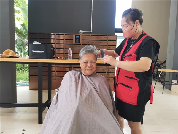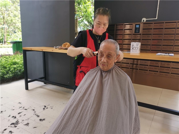 对于高龄行动不便的长者,志愿者们则以服务到家的方式,为他们提供上门理发服务。“我年纪大了,腿脚不好行走不便,感谢社区一直以来对我们老人的关心!”80多岁阮婆婆满怀感动表示感谢。