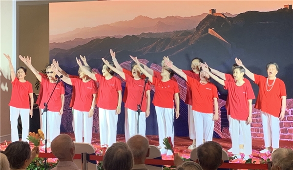 9月10日,椿萱茂•珉湾长者社区举办以“礼赞师恩•乐享芳华”为主题的教师节庆典活动,主办方邀请了来自成都其它三个项目的在住长辈进行节目表演,于奶奶所在的英语社团,带来了她们新排练的英文歌《you are my sunshine》。从abc学起的于奶奶,如今是合唱团的主力,她说,年轻的时候就特别羡慕别人能哼唱一首首旋律优美的英文歌,现在终于有时间去追求自己的爱好了。每次外出聚会时,自己以前的老伙伴们就说,她像变了一个人一样。于奶奶说,社团生活让自己精神愉悦了,看来还真的有返老还童的魔力呀。