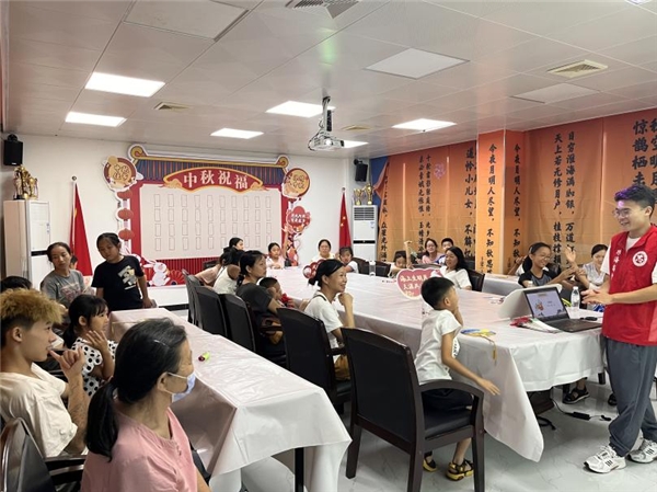 中秋文化活动环节,志愿者老师通过“中秋灯谜有奖竞猜”活动,以“猜灯谜,学中秋”的形式,提问青少年“十五的月亮(打一成语),红眼睛,白衣裳,尾巴短,耳朵长(打一动物)”等灯谜,青少年纷纷踊跃参与答题,现场热闹非凡,青少年认真琢磨,你一言、我一语地互相提示和讨论,不时为了一条谜语绞尽脑筋。猜灯谜活动不仅拉近辖区青少年之间的距离,也大大地增进辖区青少年之间的互动交流,让青少年感受到中华传统文化的魅力,提前享受中秋节日的快乐和社区给他们带来的温暖,共同度过一个欢乐祥和的节日。