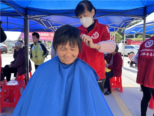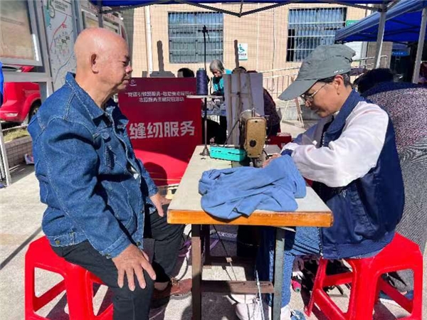 活动现场热闹非凡,集市上设有各种各样的服务项目,如义剪、义诊、磨刀、裁缝、小家电清洗等,每个摊位前都人头攒动,居民们满脸喜悦地享受着这些志愿服务。