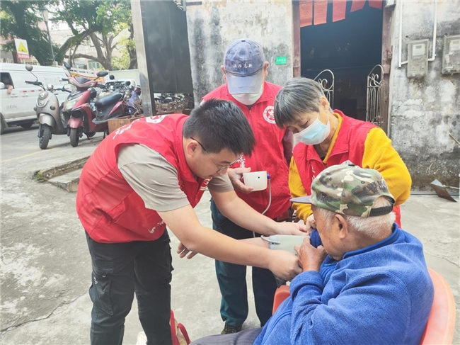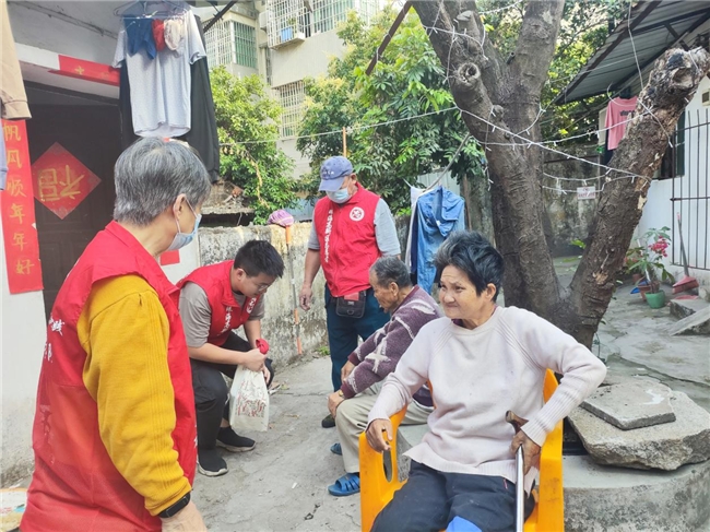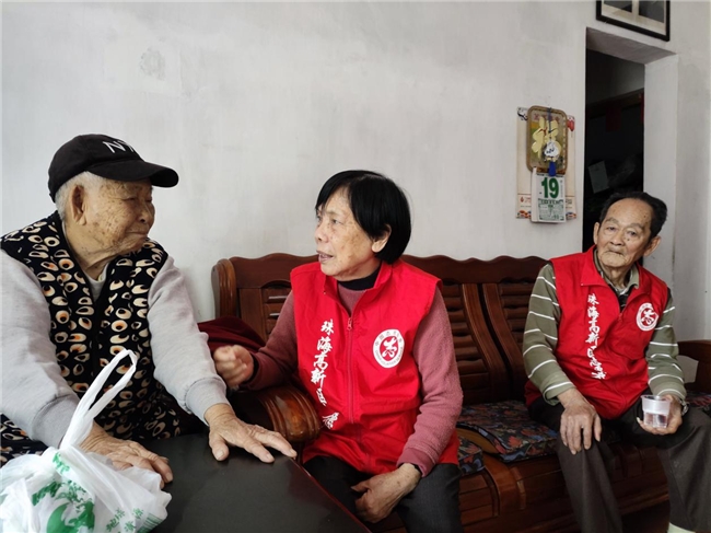 “任哥,最近身体怎么样呀?腿还疼不疼?”近日,珠海市唐家湾镇下栅社区“银龄互助”志愿者团队成员杨美鸿、黄少徳夫妻带着血压计,来到高龄困难老人蔡叔家中,为蔡叔进行健康测量,并帮他打扫卫生,和聊家常。