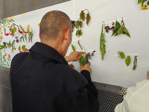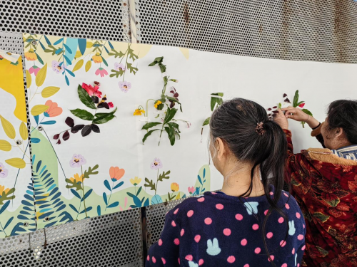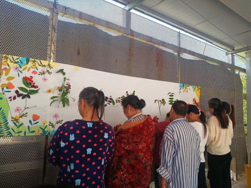 热身操和运送乒乓球游戏结束后,活动正是进入主要环节——创意贴画手工制作。精亲协会工作人员拿出从大自然中摘取的各种颜色的花朵和各式各样的树叶,以及双面胶,分发给患者们,让他们依靠自己的想象力,自由创意,自由发挥,创作出一幅别具一格的树叶粘贴画。患者们团结协作,两幅画作被贴好了,精神科主任看到画作,也夸奖患者们很有想象力,贴的很好,患者们听后都开心的笑了。