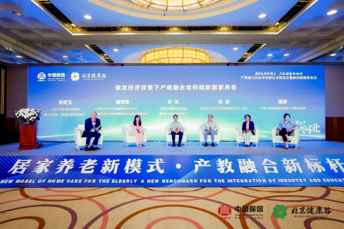 圆桌对话环节,北京大学护理学院教授、博士生导师,美国护理科学院院士孙宏玉,中国老年医学学会健康管理分会会长、全国民政行指委智慧养老专业委员会秘书长屠其雷,中国教育国际交流协会常务理事宗瓦,北京市丰台区民政局原党组书记、局长张莉,北京人寿保险股份有限公司副总经理雨浓围绕“银发经济背景下产教融合如何赋能居家养老”,探讨产教深度融合、可持续、体系化的合作新模式,为破解居家养老服务难题、共建康养服务标准体系建言献策。