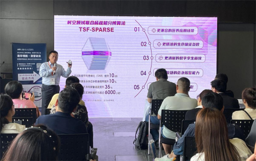 沙龙结束后,丁玉国结合实际案例,详细阐述了清雷科技在数字医养领域的落地解决方案及其合作模式。在论坛的压轴环节,丁玉国正式发布了清雷科技新成员——毫米波雷达生命体征监测仪KY-26。该产品采用了国际领先的时空频域联合稀疏超分辨算法(TSF-Sparse),测试数据平均信噪比(SNR)提升10dB;真实场景生命体征参数准确率提升10%;噪声环境下异常报警速度提升35%。新产品可以兼容更多的医养应用场景,提供更精准的生命体征参数和数字孪生画像,实现更智能的风险预测,为医养新生态的构建注入了革命性的新动力。