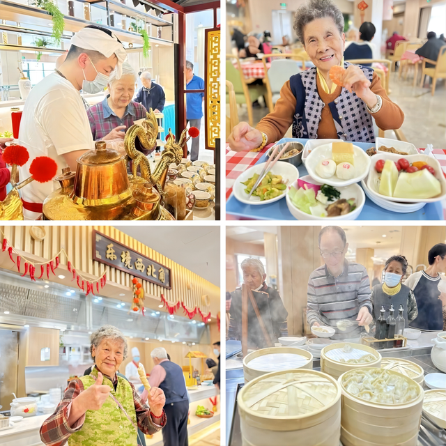 锦卷铺陈火上开,辛咸甜辣满开怀。天津自古便有“九河下梢”之说,这里物产丰饶,美食文化源远流长。天津乐境延续津菜咸中带甜、甜中有鲜的特色,善用炖、烤、蒸、煮等烹饪方式,让菜品口味独特、软硬适中,更适合长者食用。为丰富社区菜品,带给长者多样化的美食体验,天津乐境引入各地网红美食打造“乐境西北角”,经过餐饮团队用心改良,嘎巴菜、煎饼果子、豆腐脑、甜胚子奶茶等这些传统小吃变得更加健康美味,每一口都是味蕾享受,余味袅袅回味无穷。
