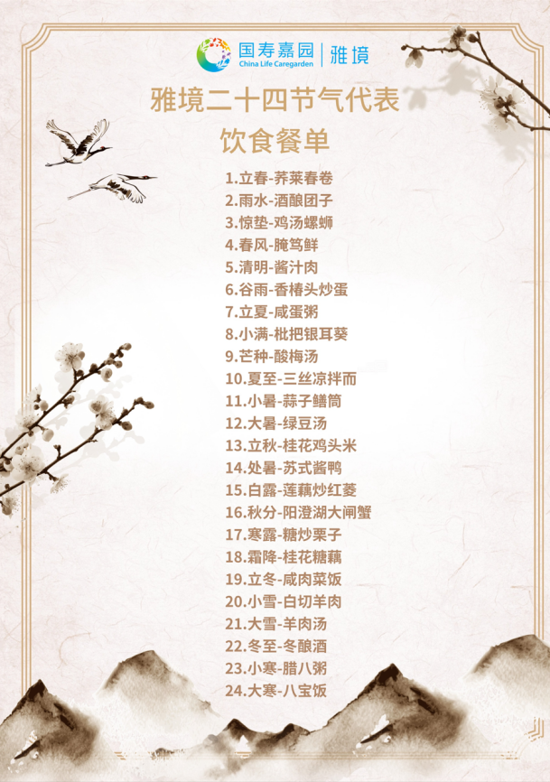 春耕、夏耘、秋收、冬藏,天人合一的东方文化让中国饮食依时而变,智慧灵动。糅合时光,升起炊烟,这才是中国人心中的烟火人间。养老是一件有态度的事情,大到生活的品质,小到一餐一饭之间,都表达着长者们内心的养老追求。国寿嘉园理解并尊重这份追求,深怀敬老之心,倾注爱老之情,围绕“吃、住、医、护、乐、学、游”多层次、多样化的养老需求,倾心倾情为长者打造幸福家园。食为民天,在国寿嘉园,一餐一食之间,处处尽显态度。