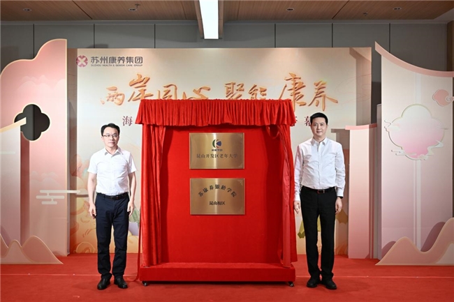 活动现场,昆山开发区老年大学、苏康养银铃学院昆山校区正式揭牌。