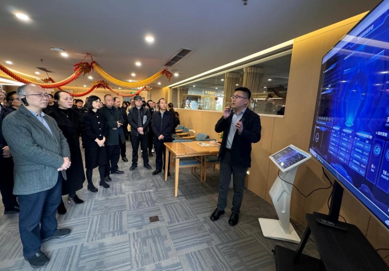 在考察过程中,光大百龄帮集团总裁陆家斌、执行总裁韩韬、经营发展部总监蔡汶栖等高层管理人员全程陪同,并向调研组详细汇报了中心在智慧养老服务模式创新、食品安全监管、消防安全管理等方面的实践成果和具体措施。调研组成员对中心的大厅接待区、智慧监控大屏、餐厅以及长者居住区等关键区域进行了参观,对中心的运营现状、设施配备和服务水平有了更加全面和深入的认识。