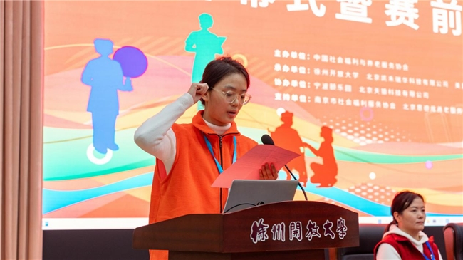 随后,选手代表面向全场庄严宣誓,“我将严格遵守竞赛规则, 秉持公正、公平、公开的原则参与竞赛,我会以专业的素养,严谨的态度,全力以赴展示真实水平,尊重对手,尊重评委,赛出风格赛出精彩,我将牢记使命,用扎实的技能为老年人能力评估事业贡献力量,让此次竞赛成为展示我们职业风采的舞台。”