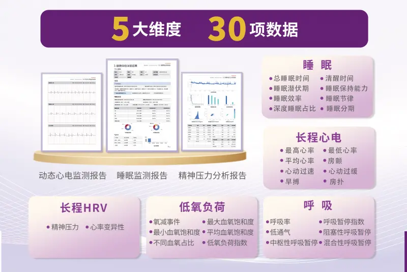 此外,清雷还展出了全新产品——夜间健康体检服务。通过一晚的监测,系统可采集睡眠、呼吸、低氧负荷、长程心电、长程HRV等数据,结合AI分析,筛查睡眠呼吸暂停、心脑血管疾病等潜在风险。该服务适用于医疗机构、养老院区、社区及居家场景,尤其为行动不便的长者提供了便捷的健康管理方案。