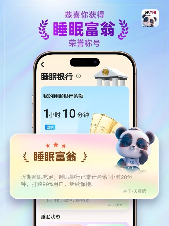 科学干预的长期效果,离不开正向激励。天悦康康的“睡眠银行”功能,将无形的睡眠健康,转化为可视化的“睡眠财富”。当你坚持规律作息、达成睡眠目标,就如同在“银行”中储蓄了宝贵的“睡眠资产”。这种正向激励反馈,能直观感受到良好习惯带来的“收益”,从而持续强化健康行为,潜移默化中重塑睡眠认知与习惯。
