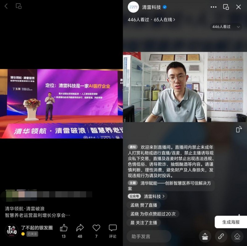此次青岛之行,清雷不仅线下展示与专场会收获如潮好评,更通过分享会直播及展后交流直播,将创新理念与实践经验突破时空限制,传递到全国康养从业者。屏幕内外,互动踊跃,智慧养老的“清雷方案”引发康养行业深度共鸣。