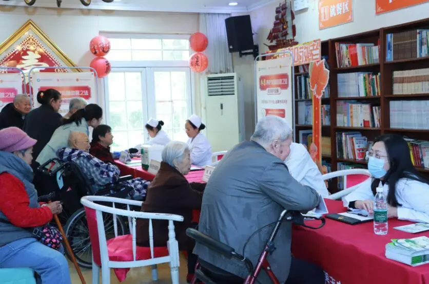 在北京幸福里养老中心的活动现场,老人们欣喜地收到了项目精心准备的中医康养关爱包,其中包含经络梳、《中医康养知识读本》和《中成药用药指导》等实用健康工具。在秋冬这个心脑血管疾病高发季节,这些关爱包里的工具,成为了守护老人们健康的贴心卫士。而大学生的陪伴和北京同仁堂志愿者的关怀则更是让敬老爱老的传统美德在社区里焕发出新的生机。来自中医科、心脑血管科的医生们围绕秋冬心脑血管疾病防治开展了专业讲座与义诊服务,来自北京同仁堂青塔药店的医务人员为老人们测量血压血糖,将“治未病”的中医智慧转化为温暖实在的健康服务。