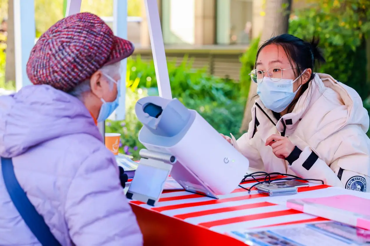 在服务类区域,专业与温情交织成一幅动人的画面。各大摊位前,朝阳区社会化退休人员及周围居民有序排队,耐心等候。工作人员一对一倾听、面对面解答,无论是秋季养生的具体建议、养老金政策的详细解读,还是居家安全的实用贴士,每位老人都能获得量身定制的专业指导;在体验类区域气氛同样热烈,通过轻松的游戏互动,不仅锻炼了老人手脑协调能力和反应速度,也让健康检测的过程充满趣味,吸引了众多老人驻足尝试。刚做完健康检测的李阿姨满面笑容地说:“这个市集办得太好了!不用东奔西跑,在这里既能检查身体,又能咨询政策,还能品尝舌尖上的美味,感觉特别暖心、贴心”。这份赞誉,正折射出朝阳区对银龄群体生活与情感需求的精准回应——“服务送到家门口,关爱送到心坎上”。